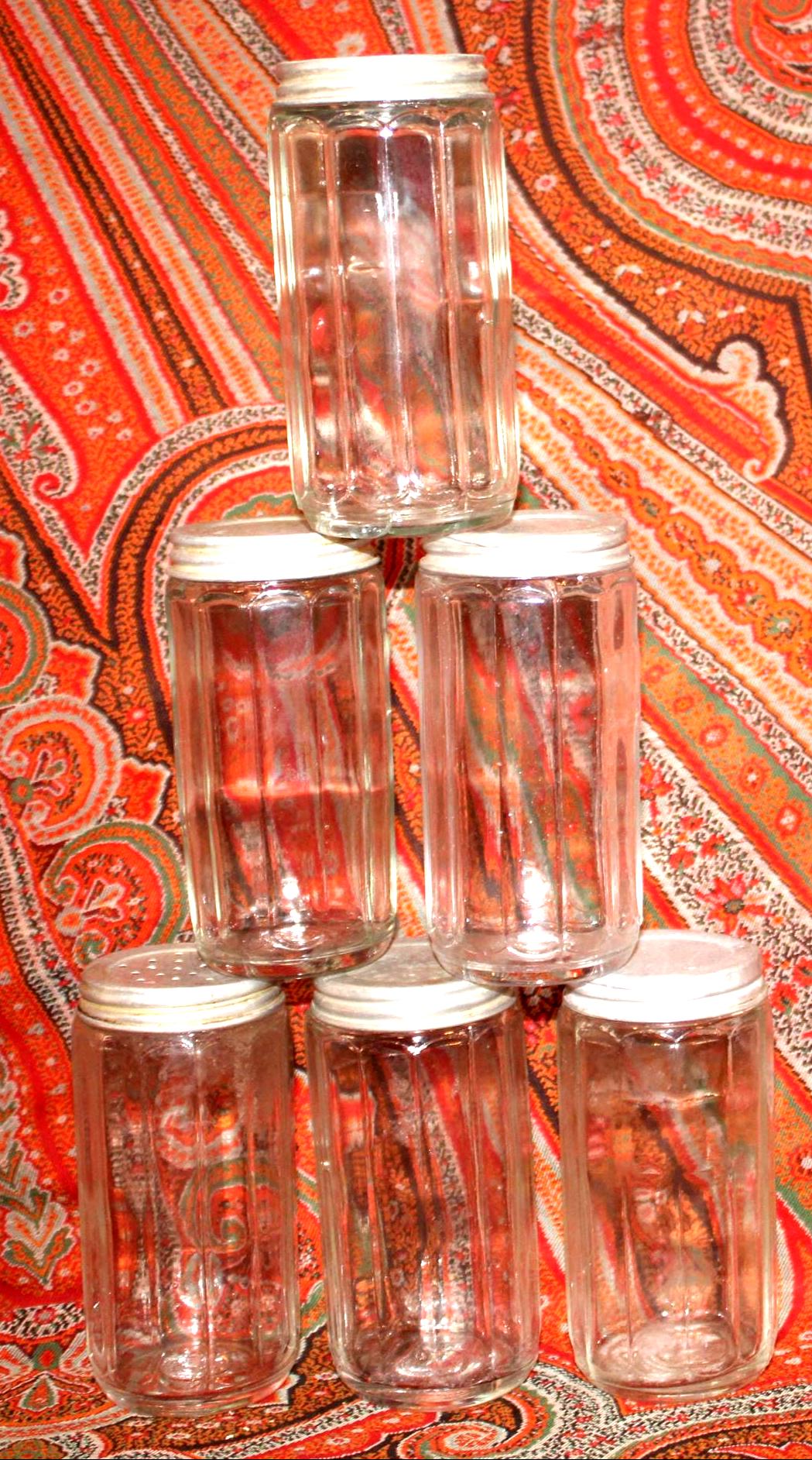 Set of 6 Antique Round 1930's Dodecagon (12-sided) Hoosier Spice Jars- Retro Jars/Hoosier/Bungalow