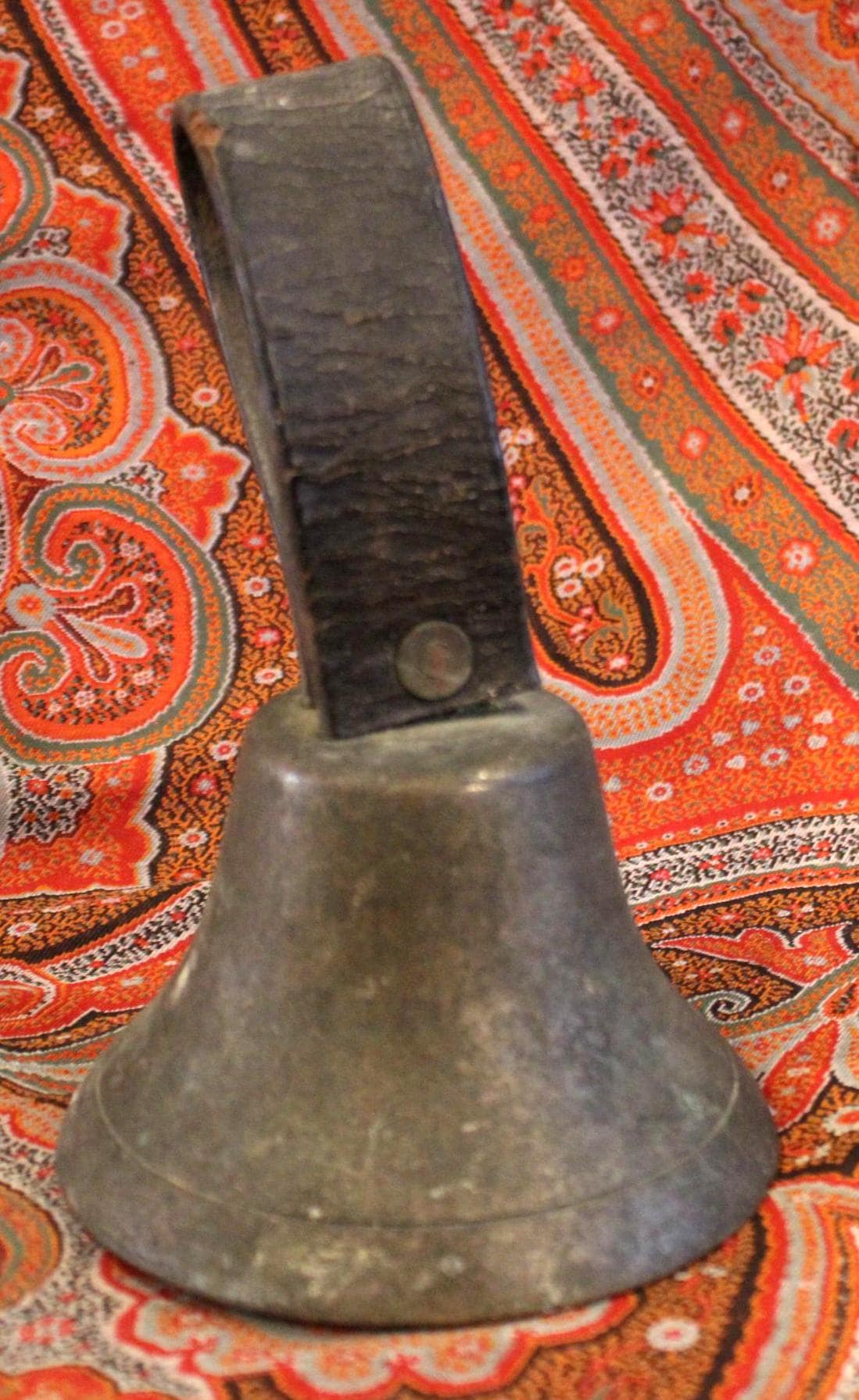 Antique 19th Century Bronze Bell with Original Clapper and Original Leather Strap-Farmhouse/Country/Cottage Decor