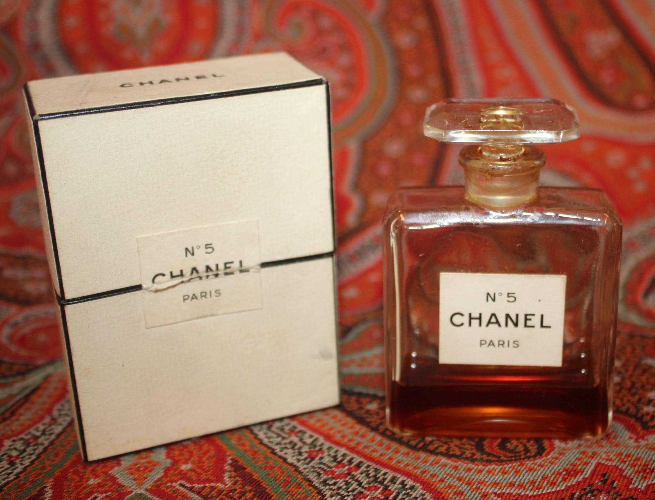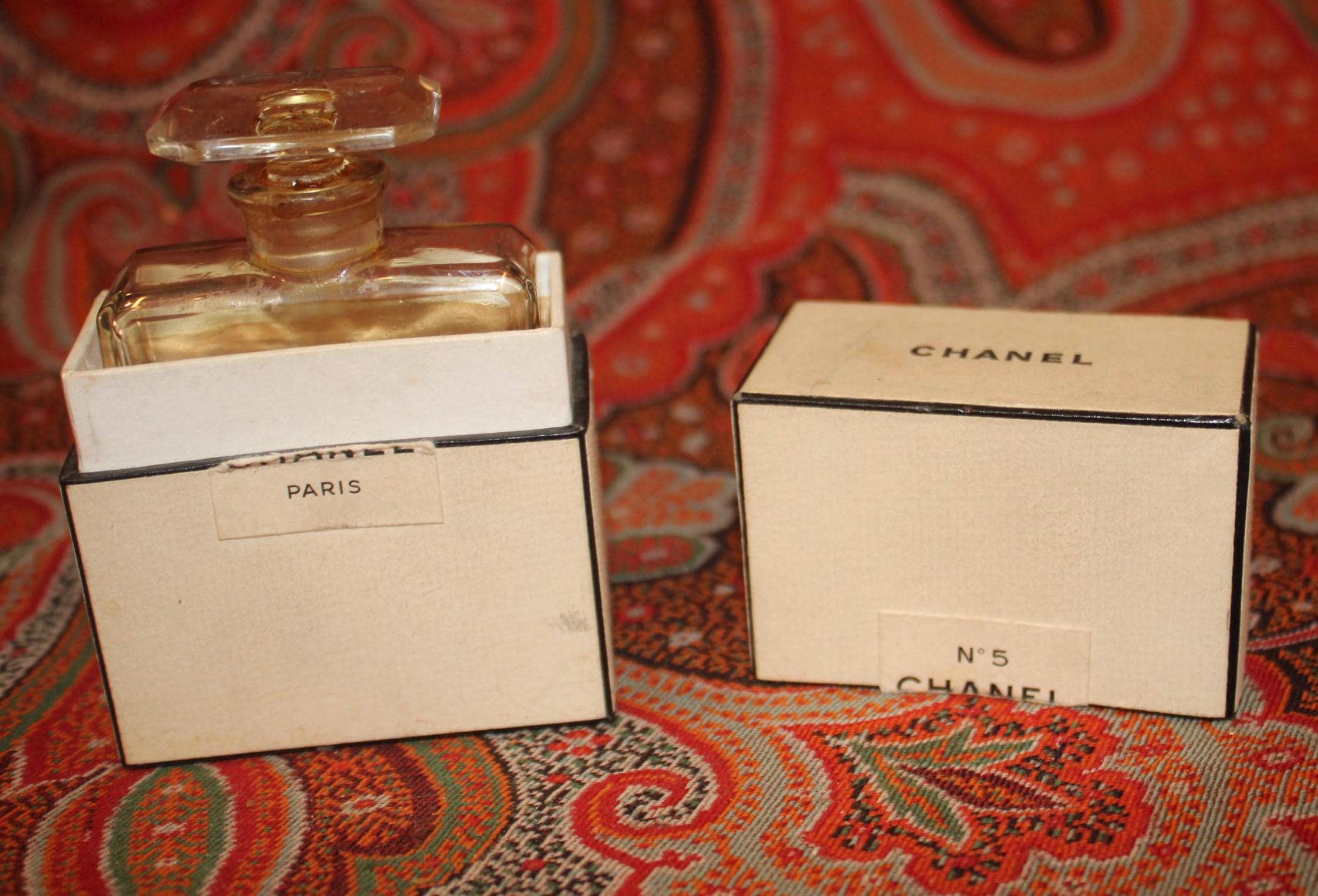 Vintage Chanel No. 5 Paris Perfume (partial) Bottle in Original Box- France/Perfect Perfume/Powder Room